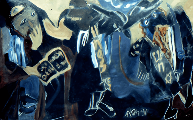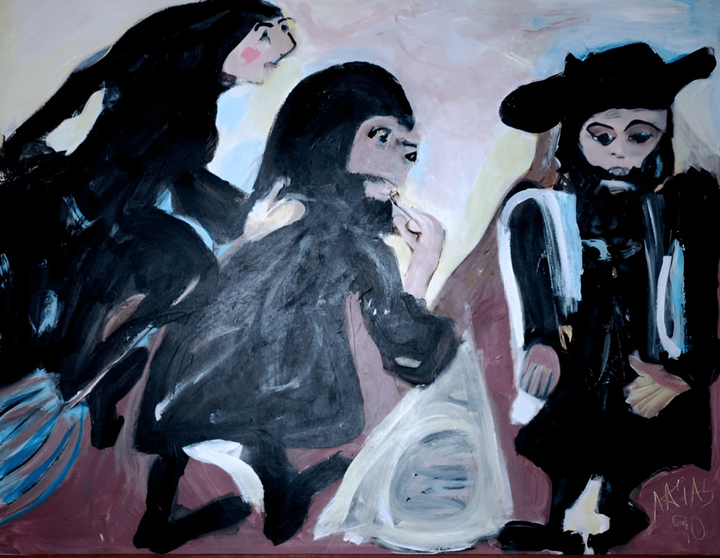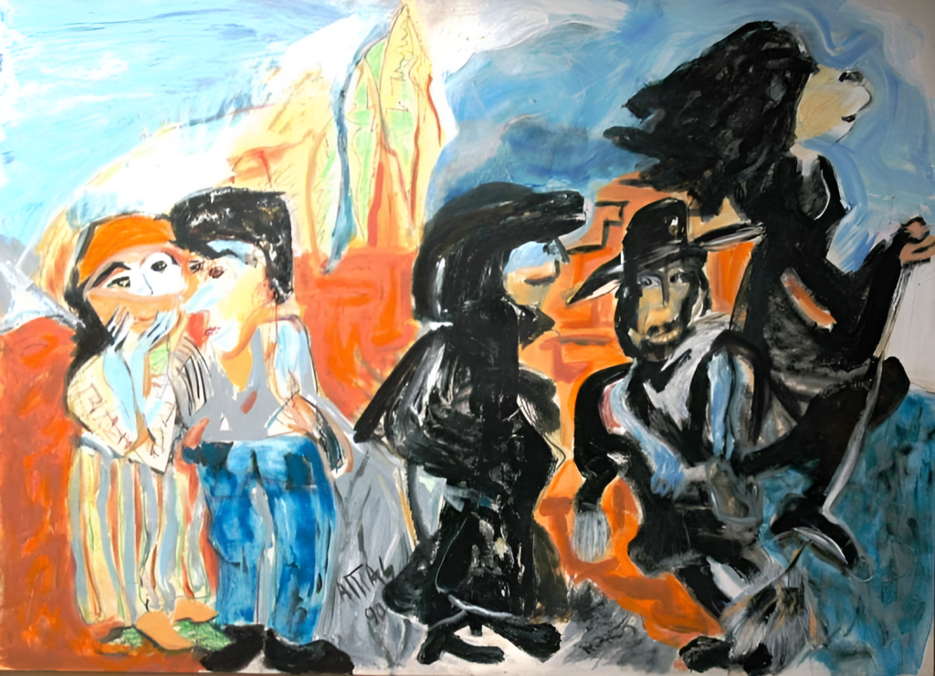 Her rabbis and other characters in dark suits and hats remain full of color nuances, semi-merged into the dark planes, and very strong, seemingly compulsive strokes. And the discreet presence of some kind of humor is not uncommon. These characters, which indirectly evoke the theme of religion, are treated with nonchalance and sympathy, not without humor, rather than solemnity. But they are not light images, but dense ones, loaded with affective connotations. In short, with this exhibition, Susana Attías confirms the validity of her creative talent.